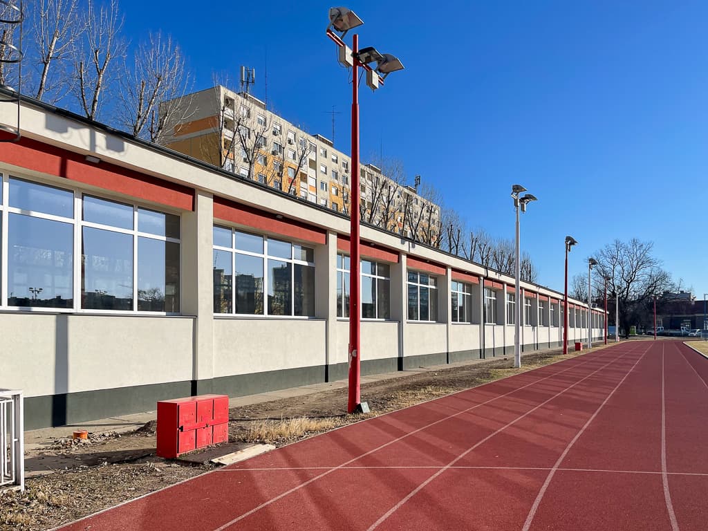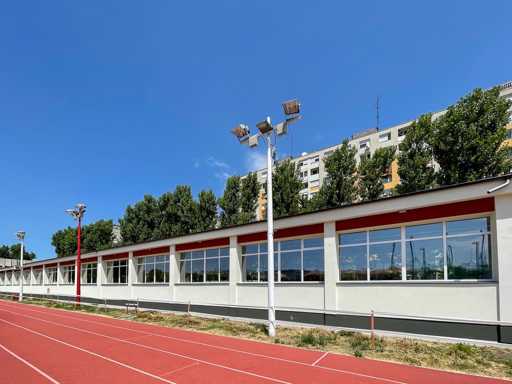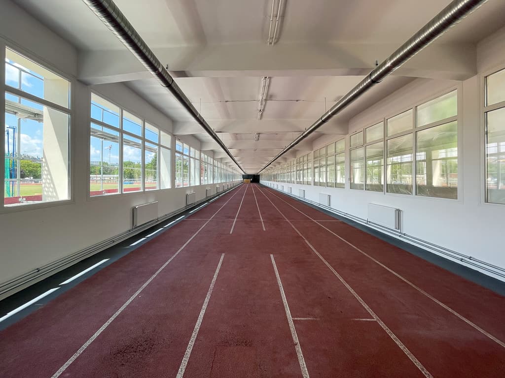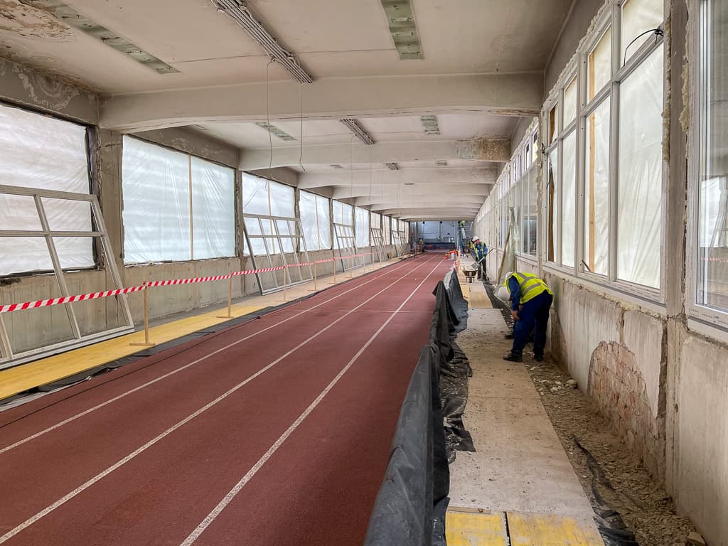 - atlétikai csarnok és futófolyosó burkolatának kiegészítése és felújítása;