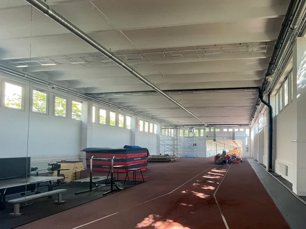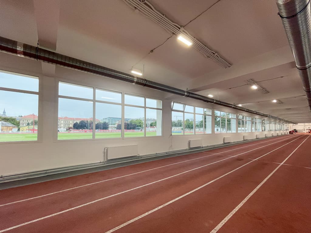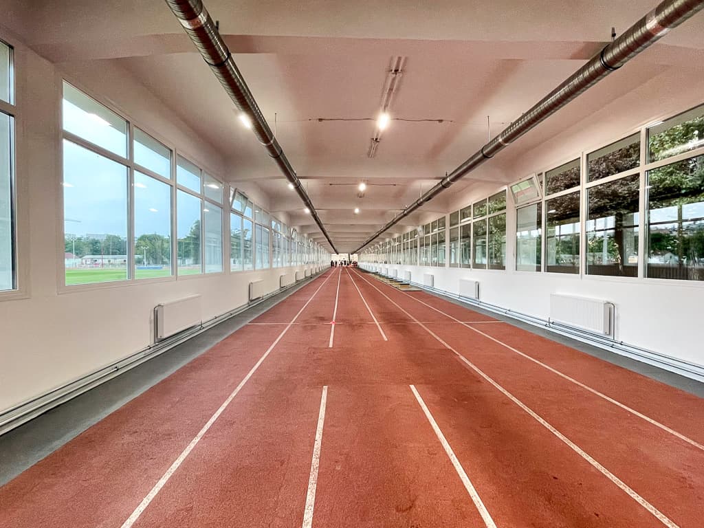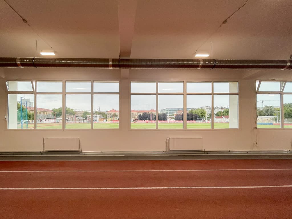 - atlétikai csarnok és futófolyosó burkolatának kiegészítése és felújítása;