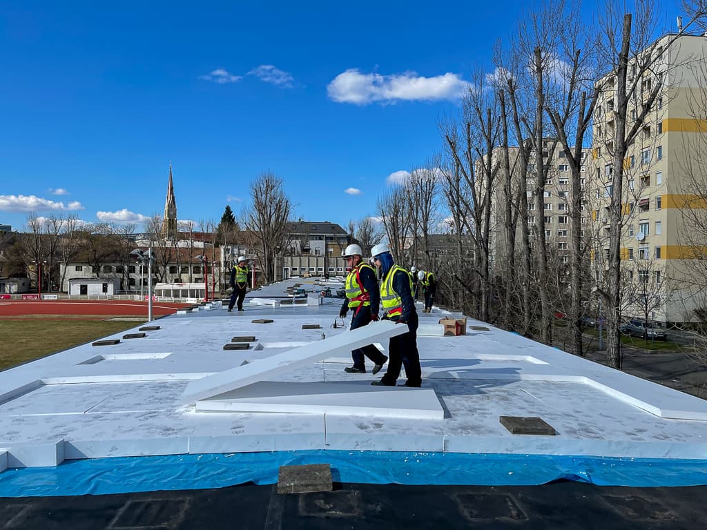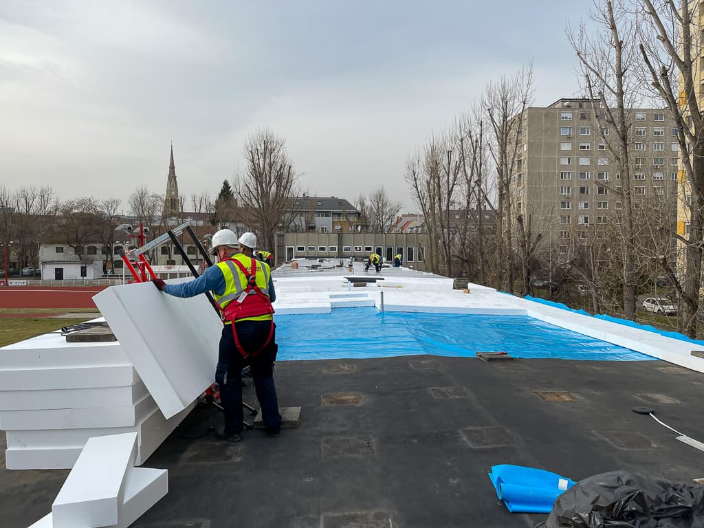 - tetőszigetelés beépítése új tető rétegrenddel (2010 m2);