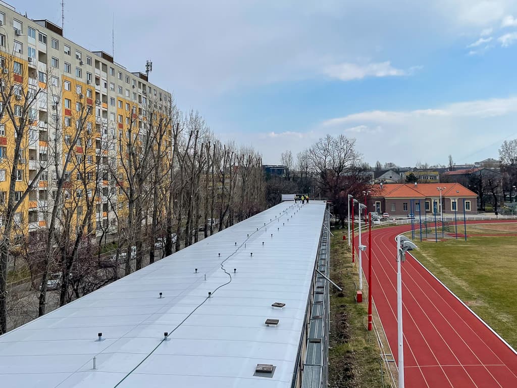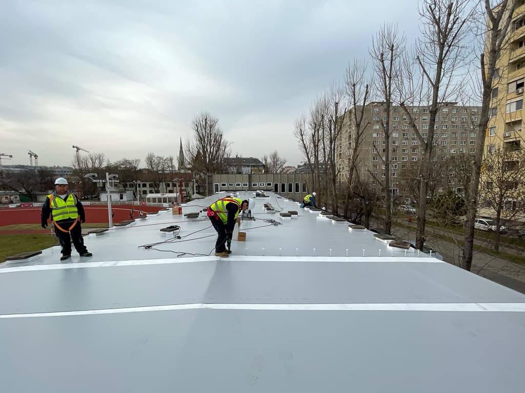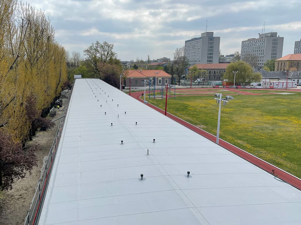 - lécbetétes lemezfedés horganyzott acélból, VM ZINC, hozzá tartozó csatorna rendszer cserével 2150m2-en;