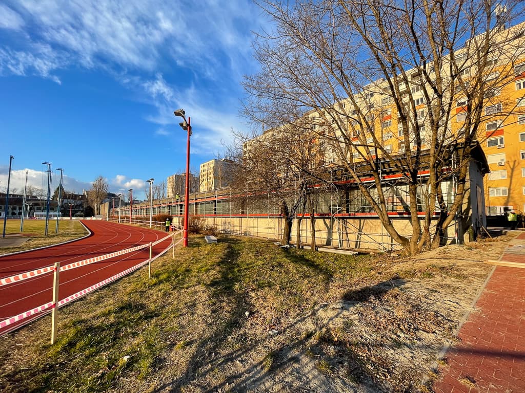 Homlokzatfelújítás; utólagos falszigetelés – injektálásos tömbszigetelés; utólagos hőszigetelés; belső felújtások és átalakítások – öltözők, bejáratok, csarnoktér felújítása, tatami újrapozícionálása, emeleti padlóburkolat cserék; összekötő épület homlokzati felújítása; parkoló felújítása.